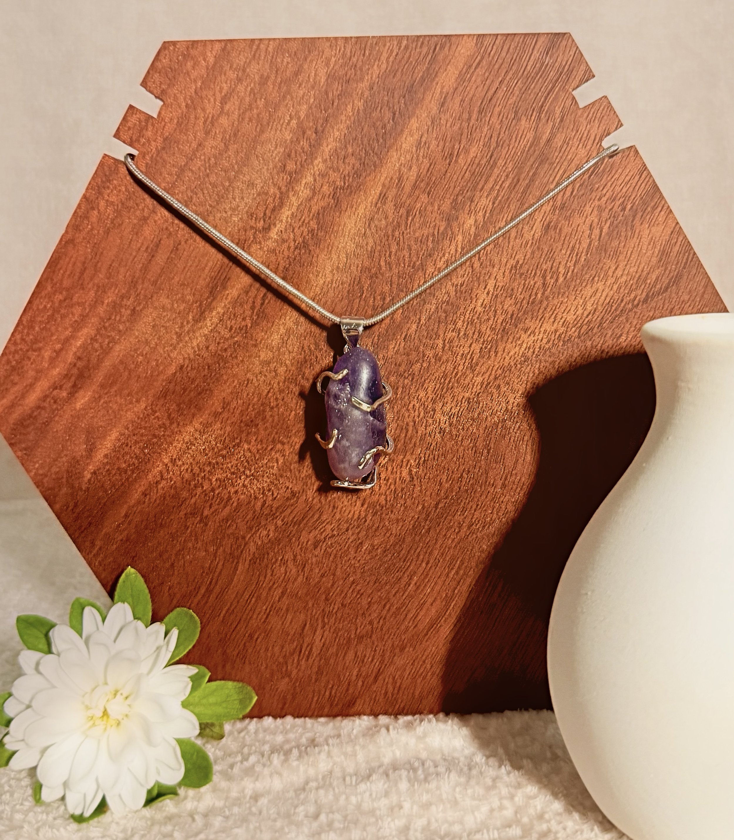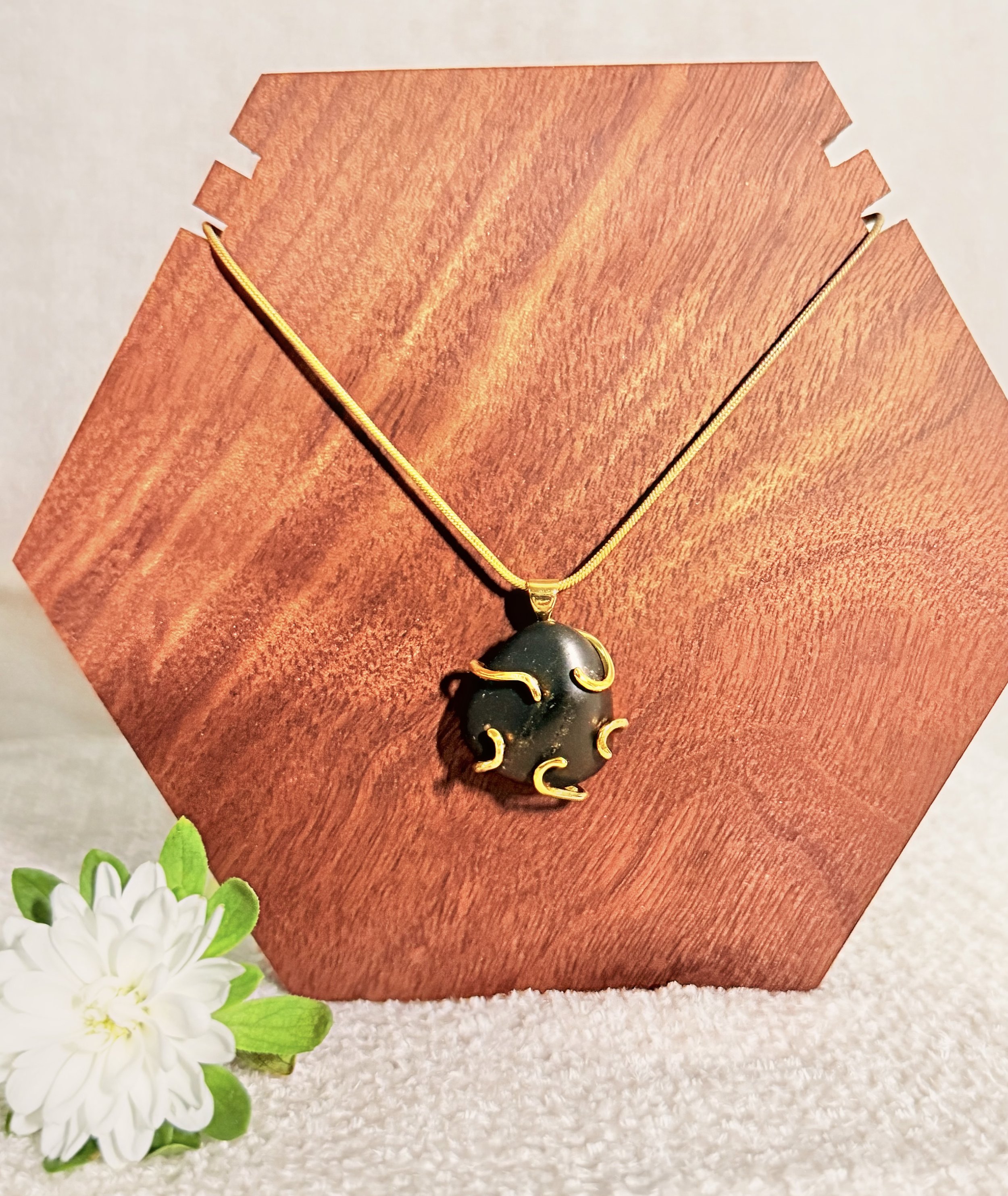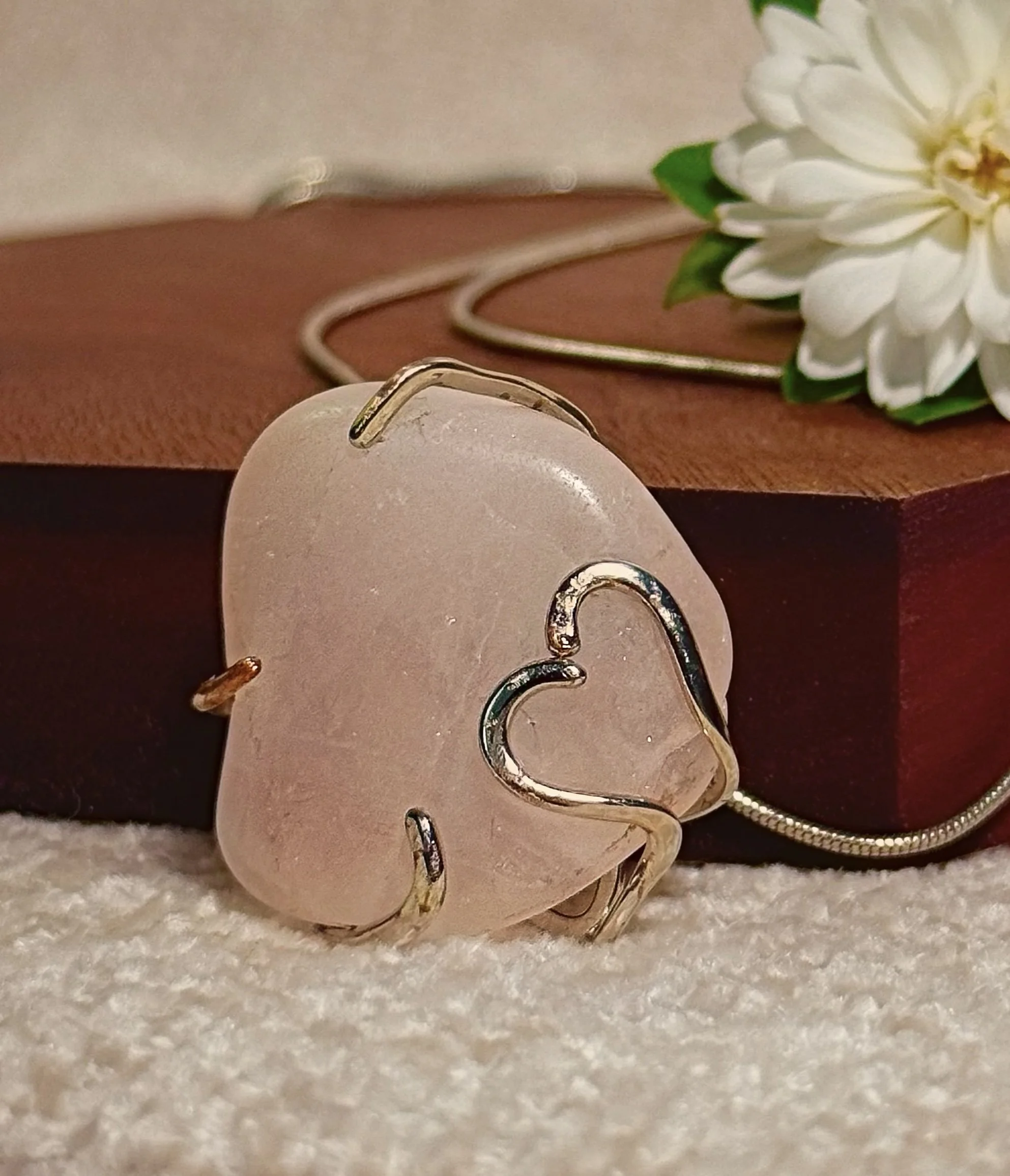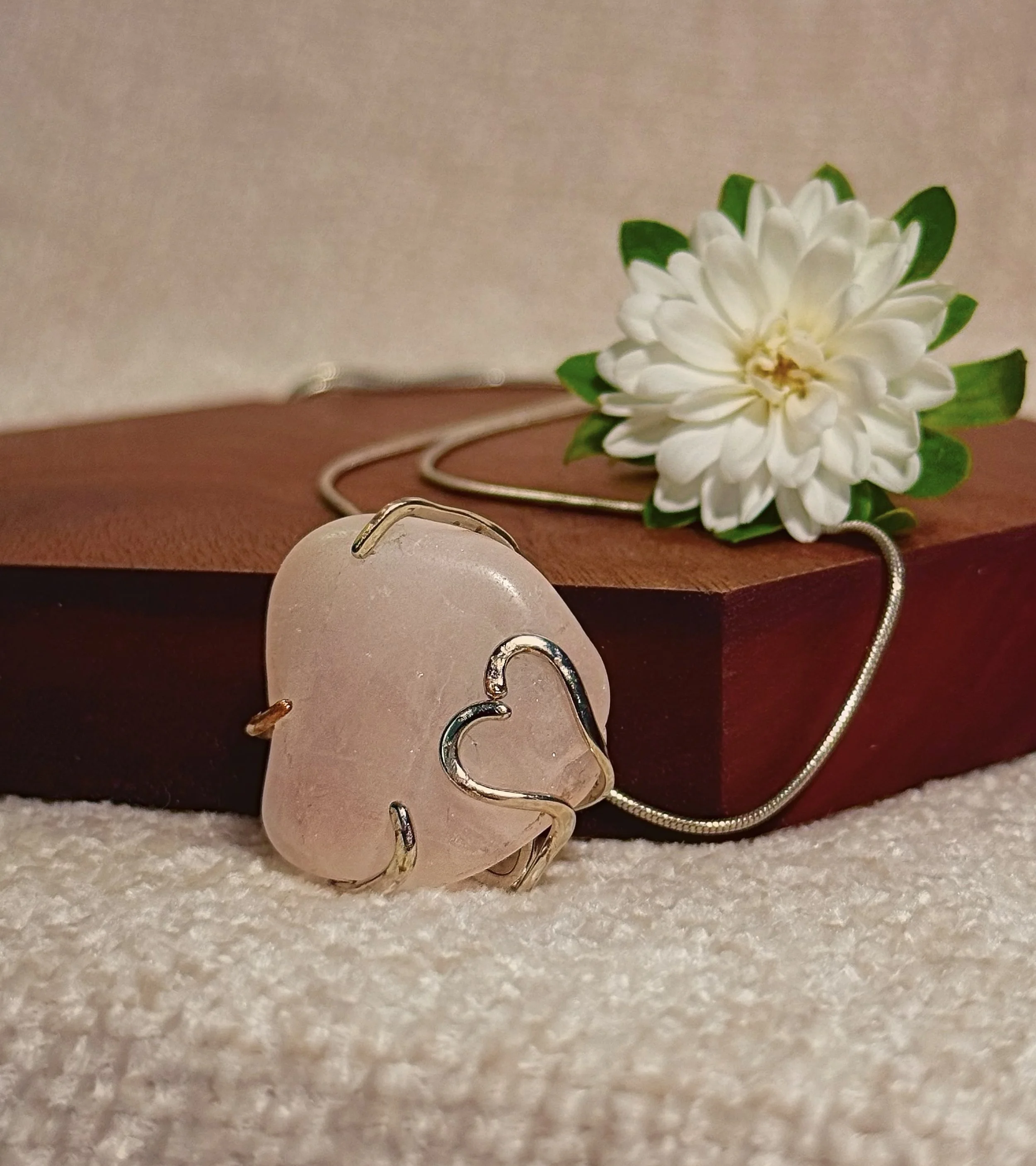 - *Rose Quartz Stone:* A beautiful, smooth rose quartz stone is the centerpiece of this necklace, adding a touch of warmth and sophistication.