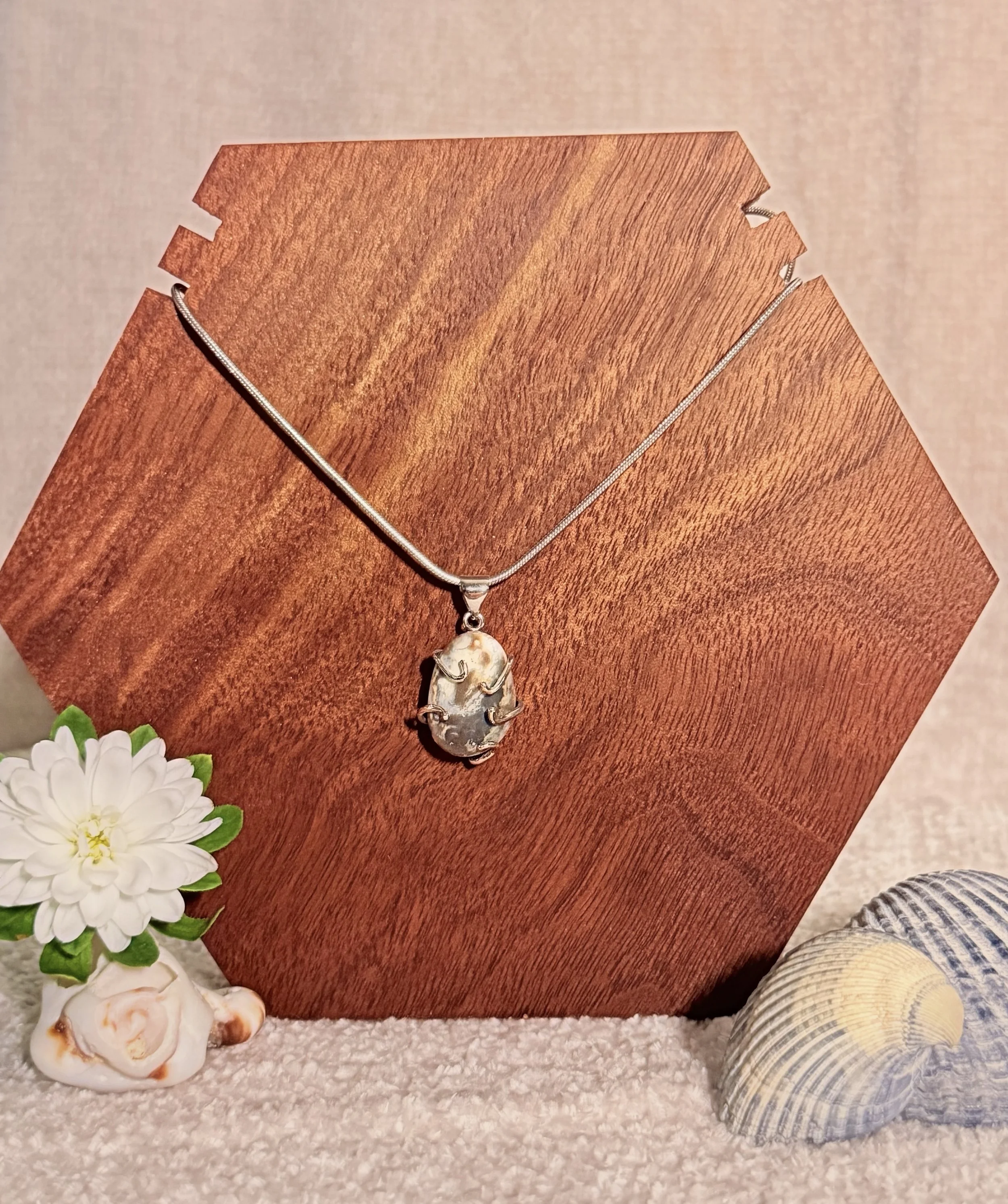 - * Sterling Silver Setting:* The stone is securely set in a sterling silver heart-shaped pendant, creating a striking contrast that enhances its natural beauty.