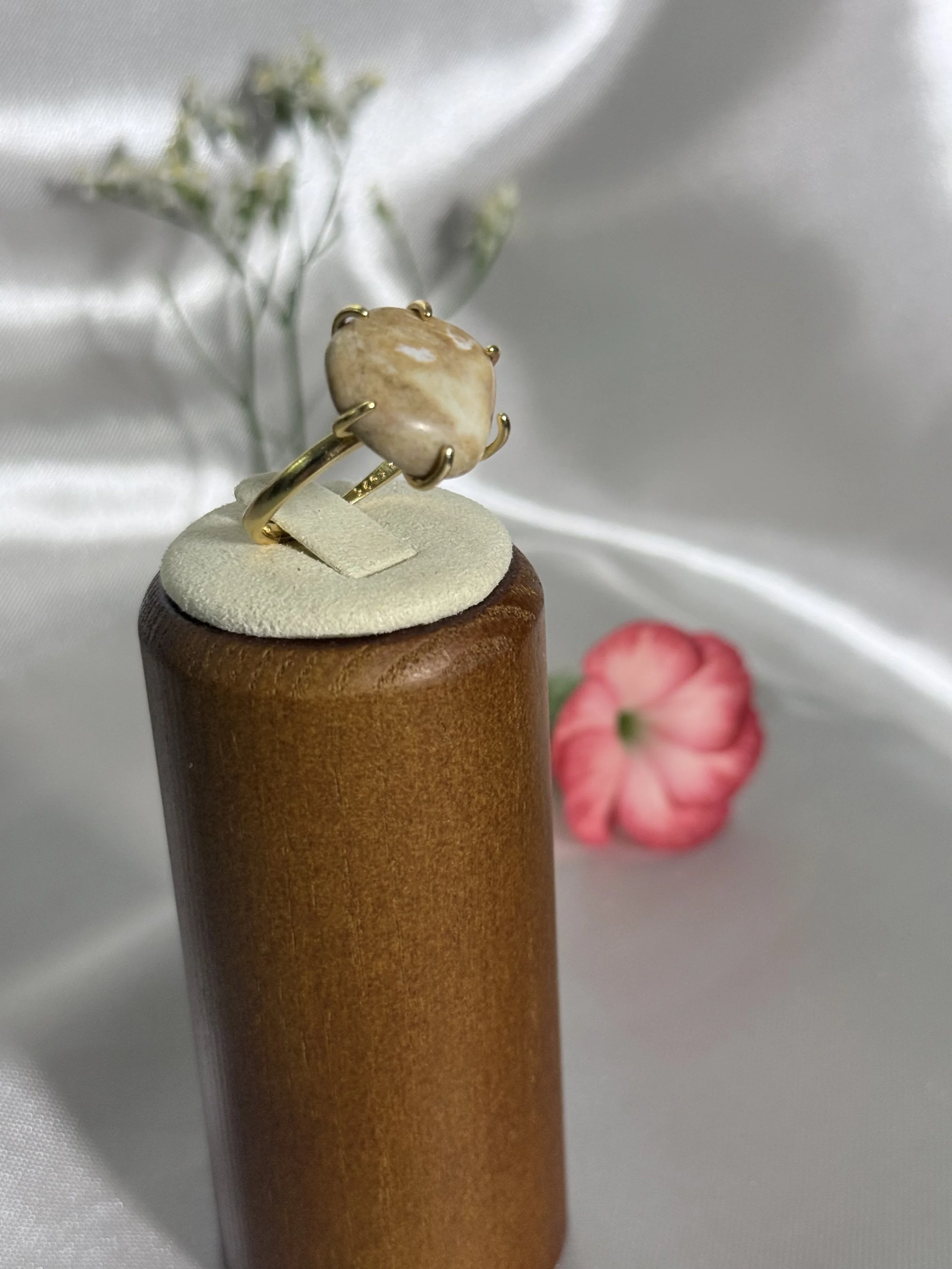 Discover the enchanting "Moonstone Beach Collection," featuring exquisite jewelry handcrafted from authentic moonstones collected exclusively from Moonstone Beach, Cambria, CA. Each piece, whether a delicate necklace or elegant ring, undergoes a precise 30-day polishing process to reveal its inner brilliance.